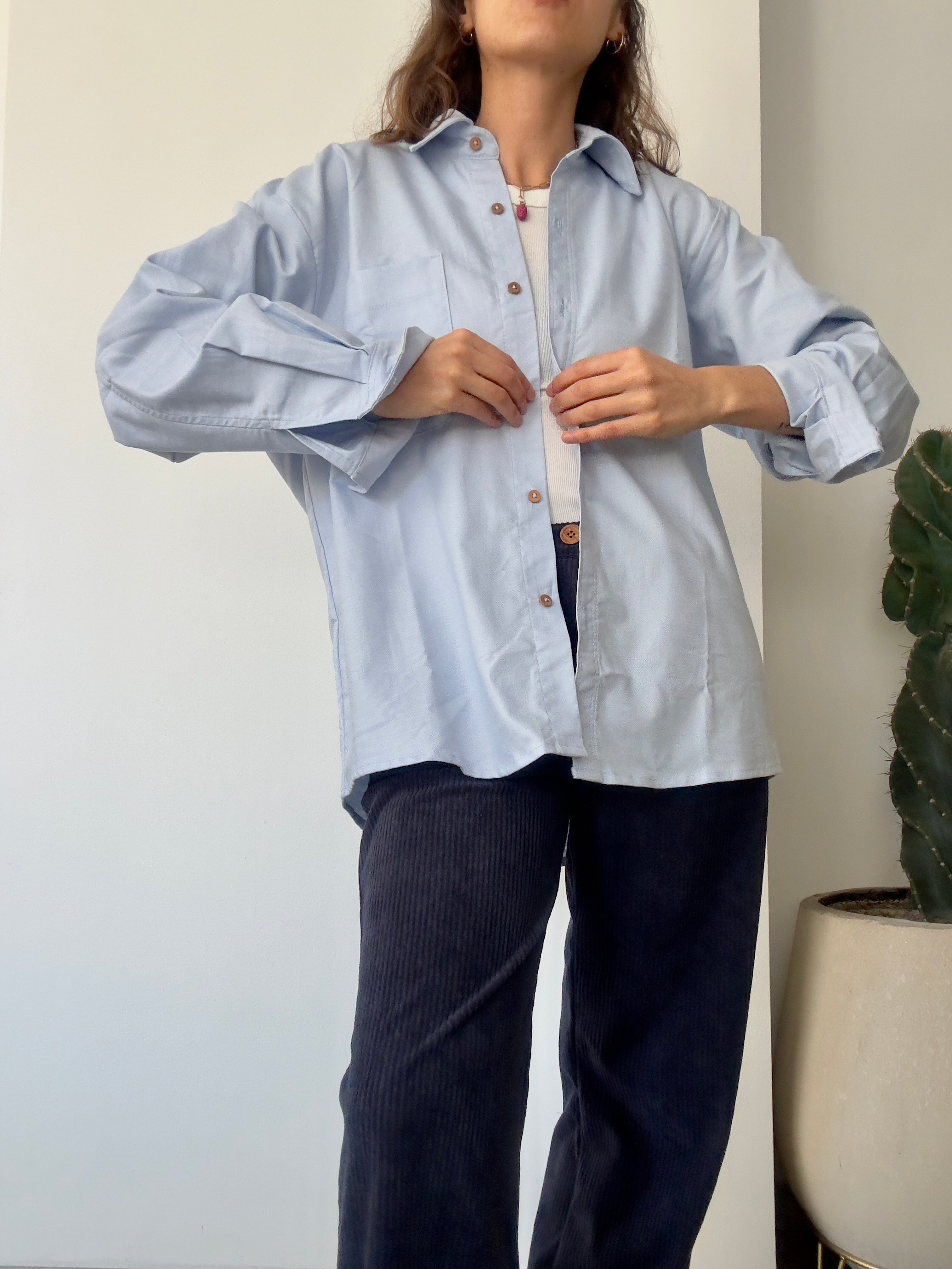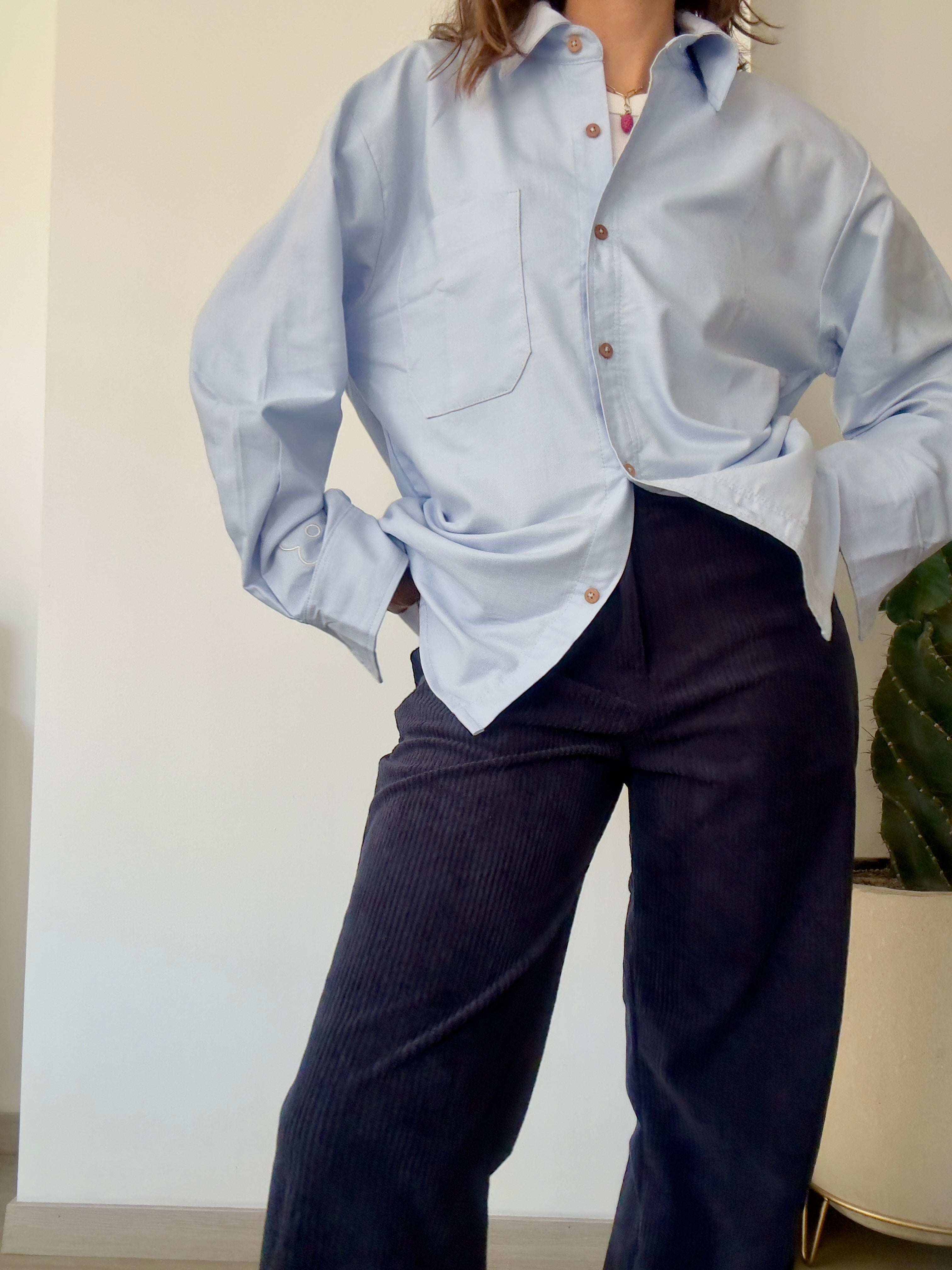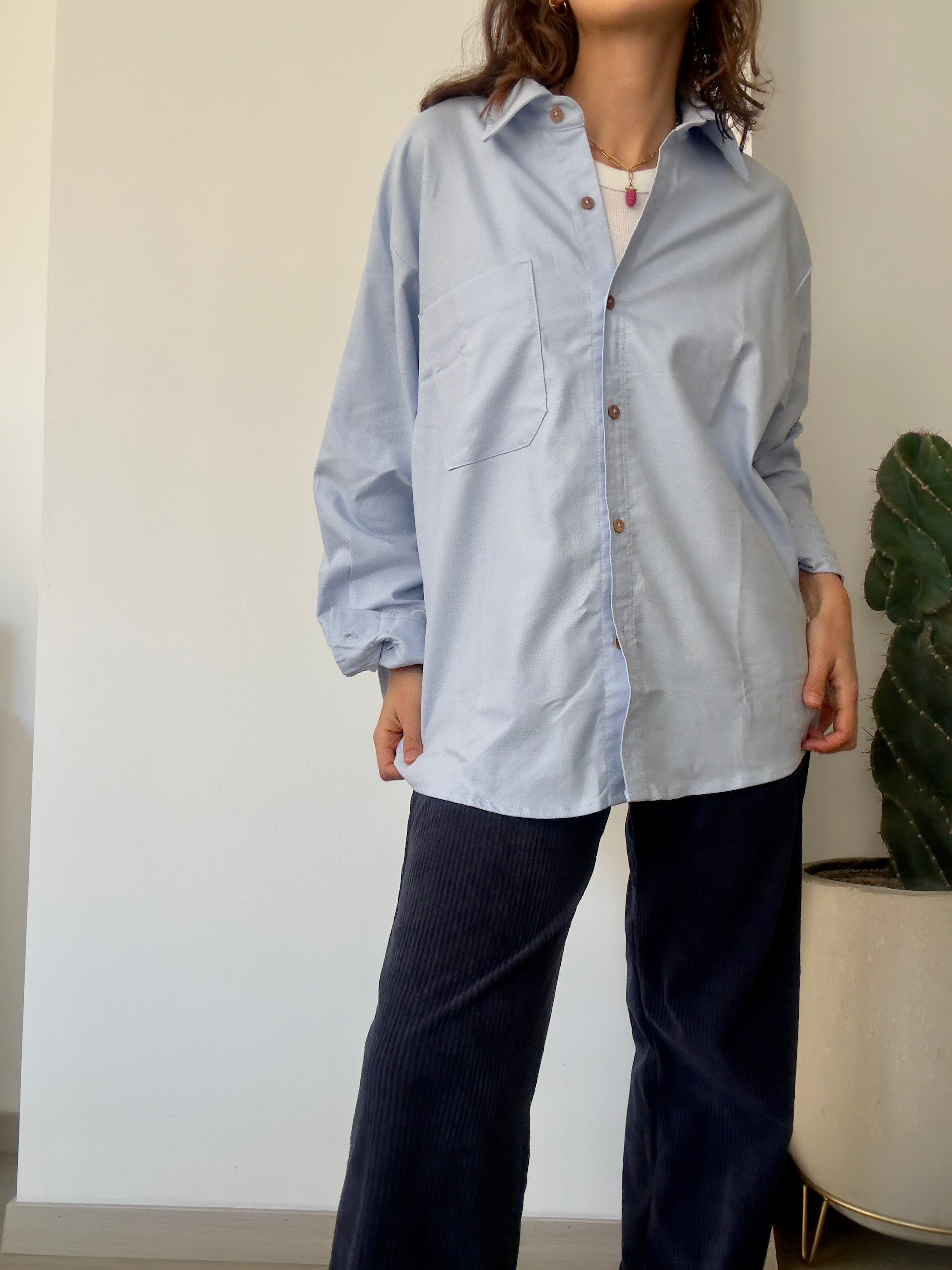 Camisa en algodón textura muy suave, con botones en madera. Tiene una flor bordada en la manga.