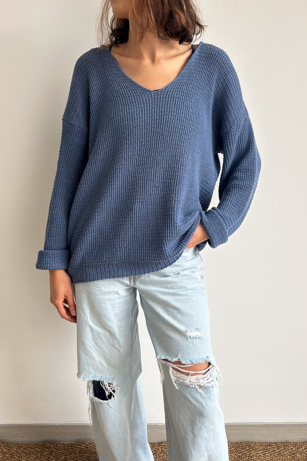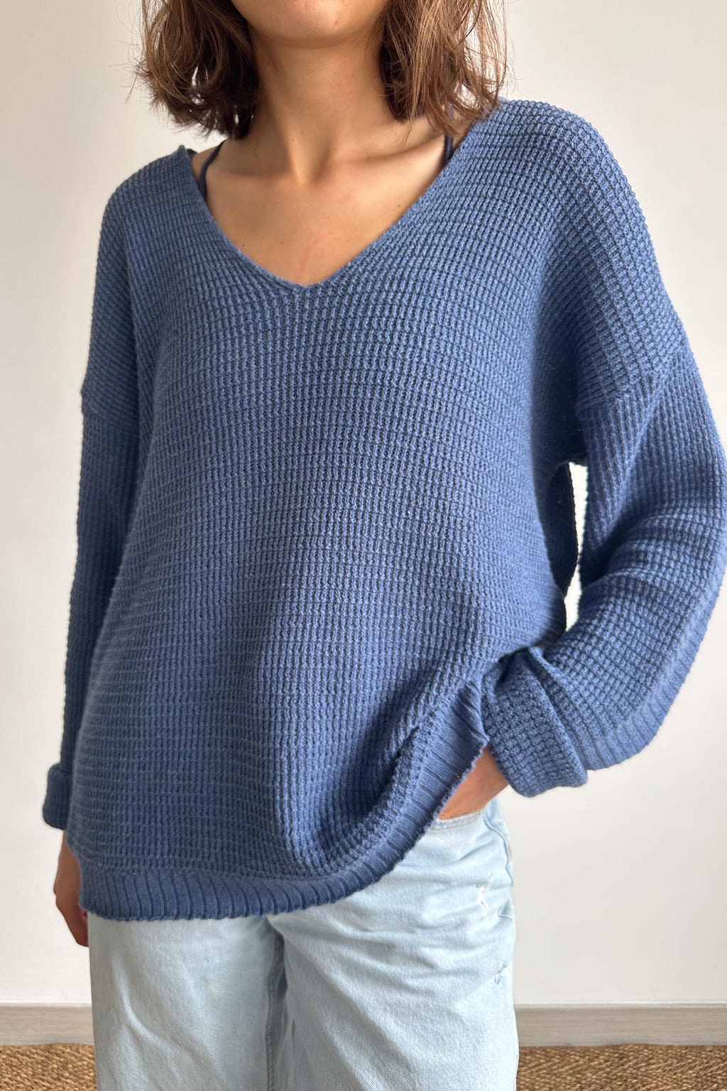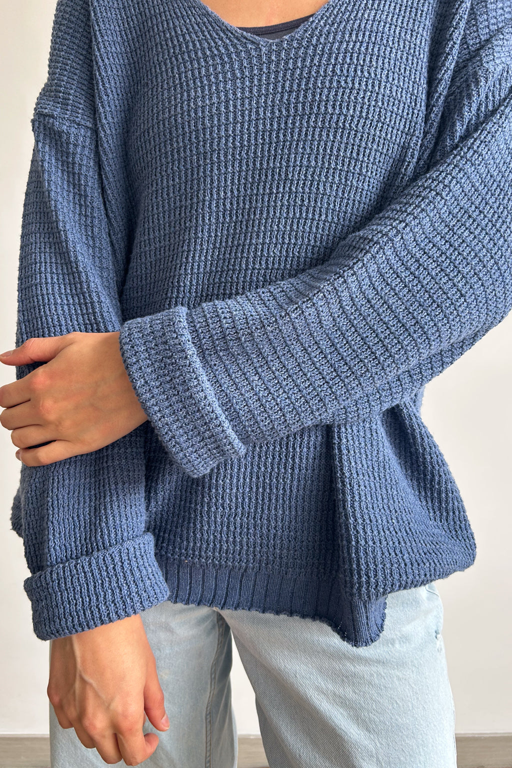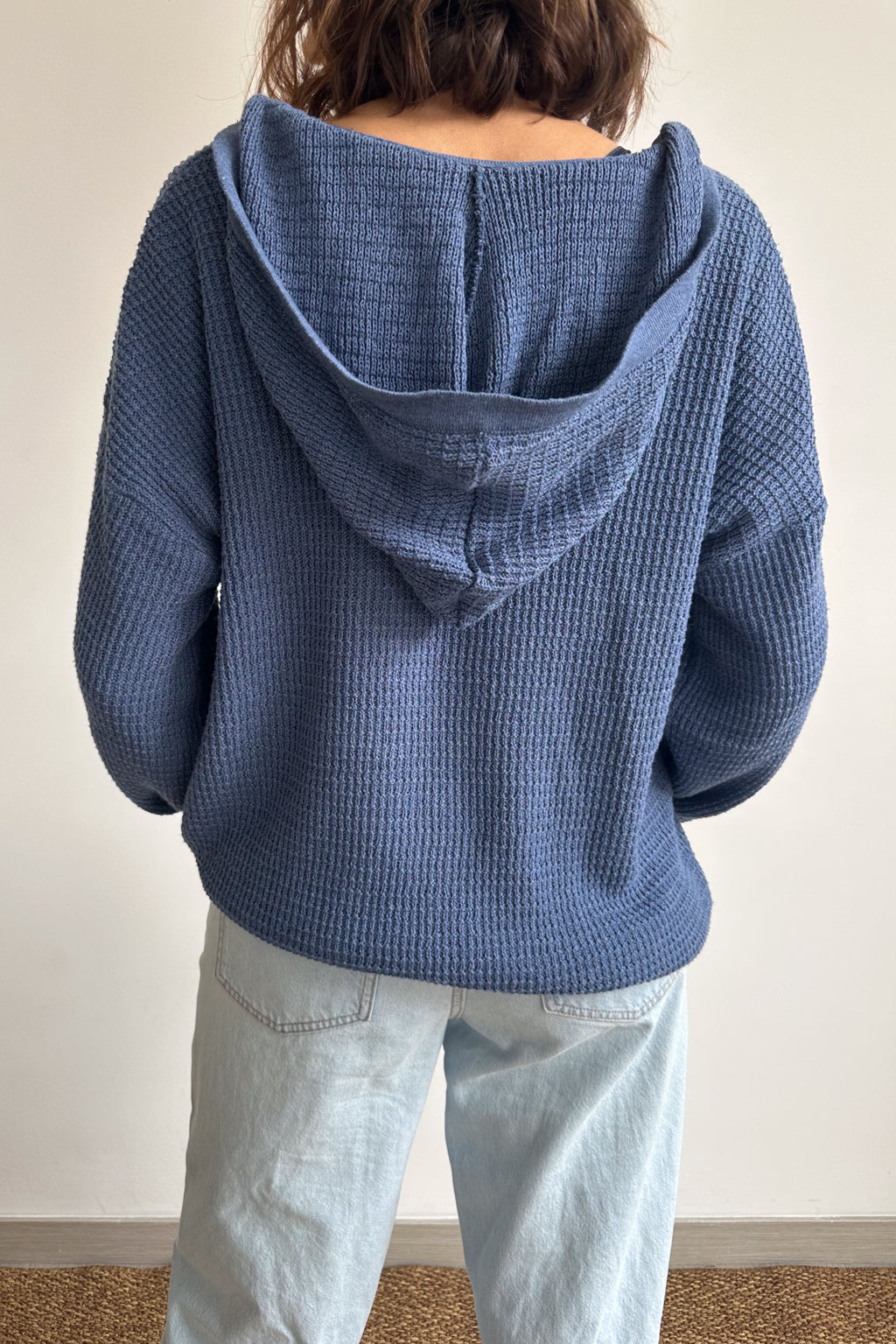 Sweater oversized con capota tejido en algodón regenerado, silueta relajada y cómoda.