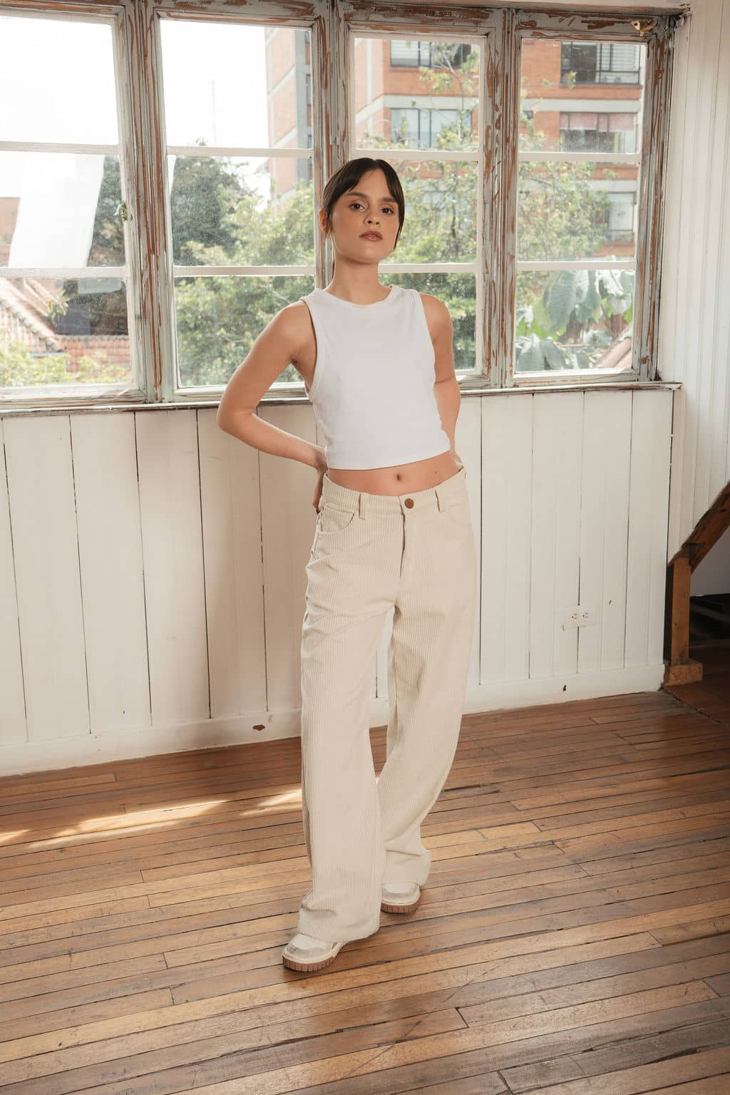 Pantalones clásicos de pana, horma suelta y cómoda.