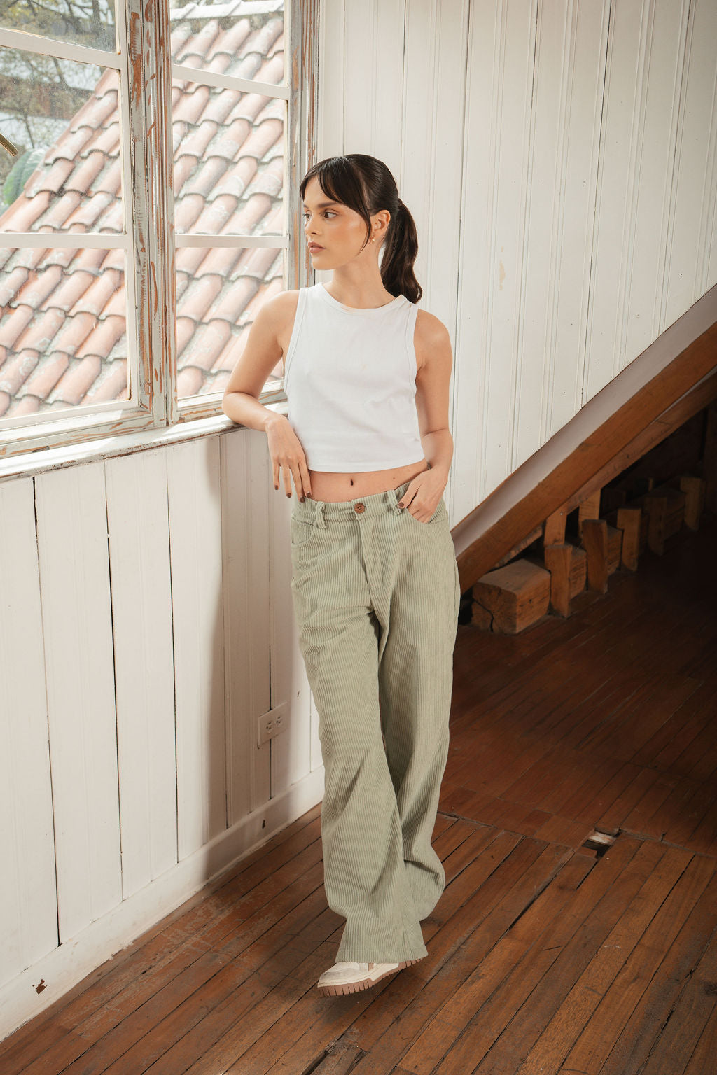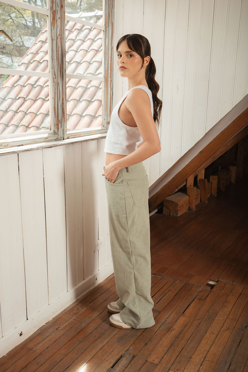 Pantalones clásicos de pana, horma suelta y cómoda.