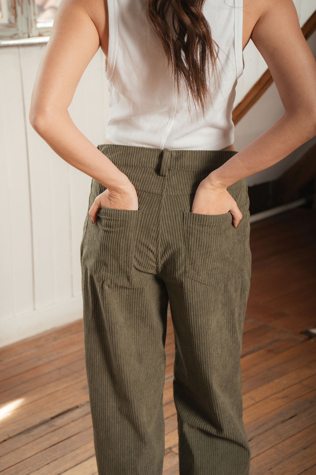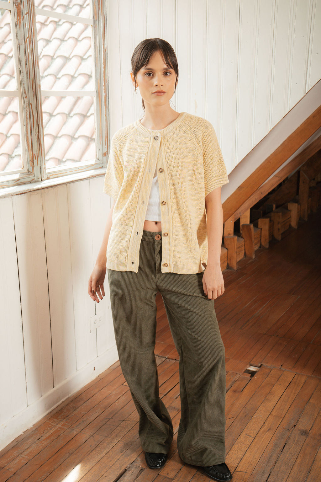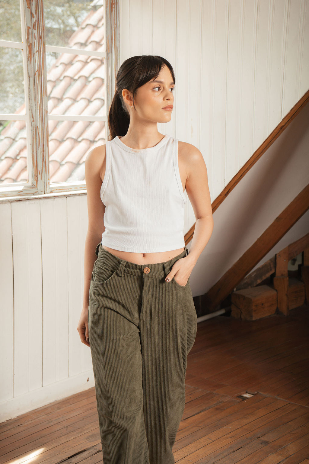 Pantalones clásicos de pana, horma suelta y cómoda.