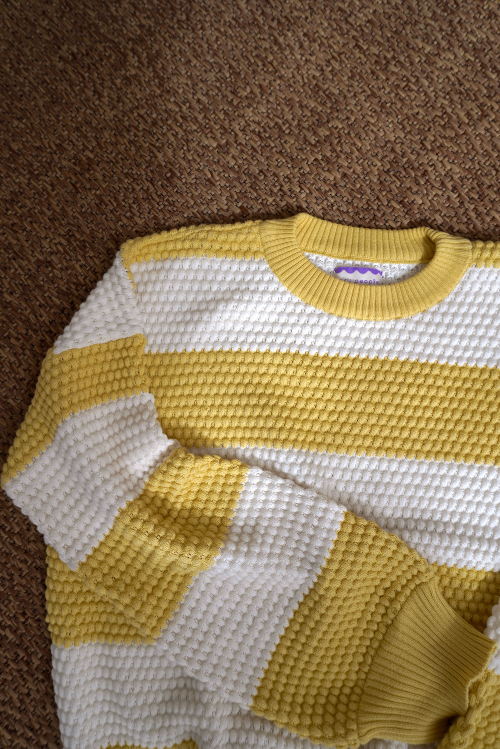 Sweater tejido en algodón con textura de bolitas. Horma sueltica y oversized.